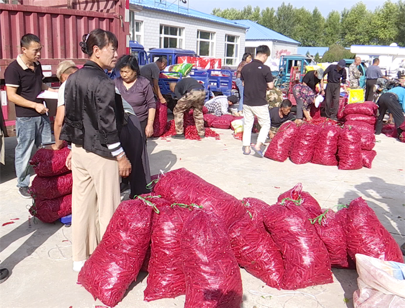 在村里的集中收购点,一袋袋色泽鲜亮、个头饱满的红辣椒经过称重、登记后,被整齐地摆放上车。据现场负责人介绍,今年的红辣椒被集中收购,实现了从地头到市场的无缝对接,确保了农民辛勤劳动的成果能够及时转化为实实在在的收入。这种“订单式”的集中收购模式,有效规避了市场波动风险,保护了种植户的利益,激发了农民们的种植热情。