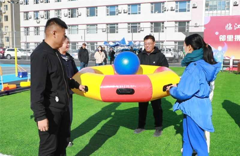 活动现场,来自临江街道、人和社区、永兴社区的三支代表队齐聚赛场,在轻松欢快的气氛中展开了一场智力与体力相结合的趣味比拼。本次运动会紧扣“趣味”与“合作”两大主题,精心设置了“众星捧月”“趣味拓展障碍赛”“毛毛虫竞速”“摸石头过河”和“无敌风火轮”五项集趣味性、协作性和竞争性于一体的比赛项目。现场气氛热烈,精彩不断。