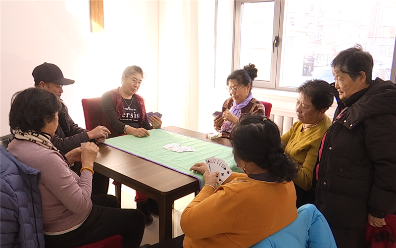 服务站内,居民们结伴而至,或围坐在牌桌前,兴致勃勃地进行扑克友谊赛;或聚集在电视机前,聚精会神地观看经典影片。在健康生活区,社区工作人员耐心地为居民们测量血压,询问他们的身体状况;健身区里,居民们在动感单车上挥洒汗水、舒展筋骨,活力四射。暖意融融的服务站不仅增进了邻里友情,也让寒冷的冬日变得温暖而热闹。