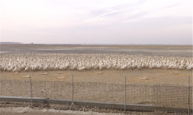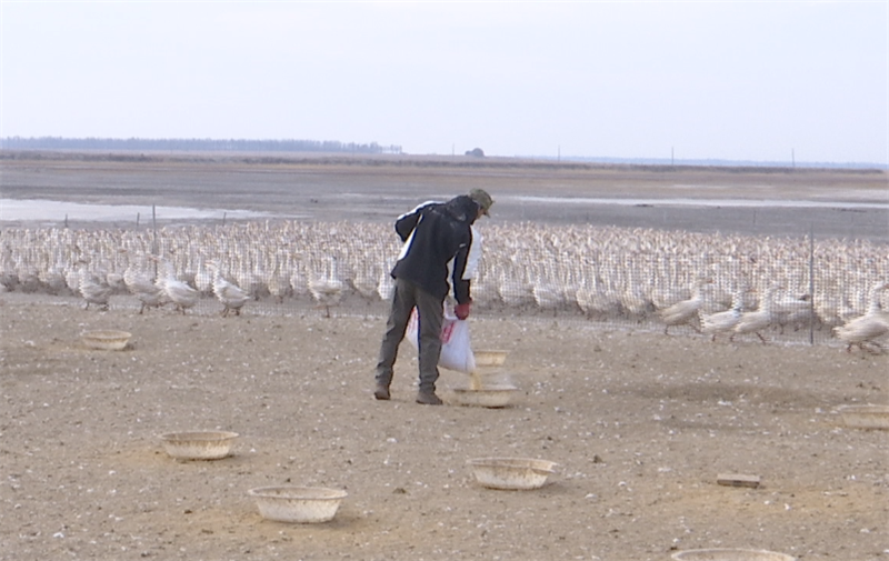 在大岗子镇杏树川村的白鹅养殖场里,成群的白鹅在宽敞的场地内悠然自得,或在水中嬉戏或在地上觅食,场面十分壮观。白鹅养殖户李军威正在鹅舍里忙碌,添料喂鹅、打扫卫生、稳固鹅舍围栏,脸上洋溢着收获的喜悦。