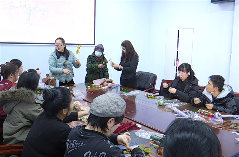 活动中,“祈福”环节在“巧手扮新春”的温馨氛围中进行。居民们在手工达人指导下,兴致勃勃地编织扭扭棒花束、制作艾灸锤,一件件充满巧思的作品不仅增添年味,更寄托了对新年安康顺遂的美好祈愿。