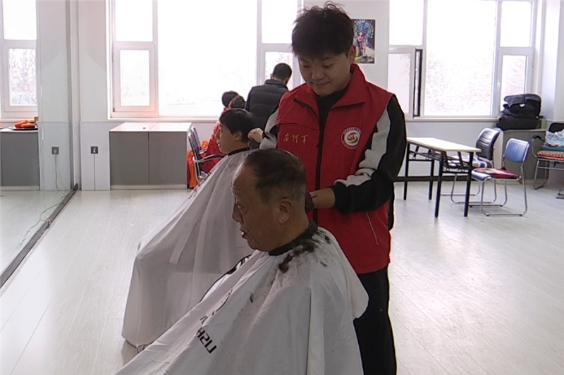 活动现场设有义诊和义剪服务区域。在义诊区,安北社区卫生服务中心的医护志愿者们为老兵们提供血压测量、血糖检测等基础诊疗服务,细致询问他们的既往病史、用药情况及日常饮食作息,并针对冬季高发疾病预防、慢性病调理等问题提供专业建议。在义剪区,理发师志愿者结合老兵的年龄特点与个人喜好细心修剪发型,并与老兵们亲切交谈,传递温暖与关爱。