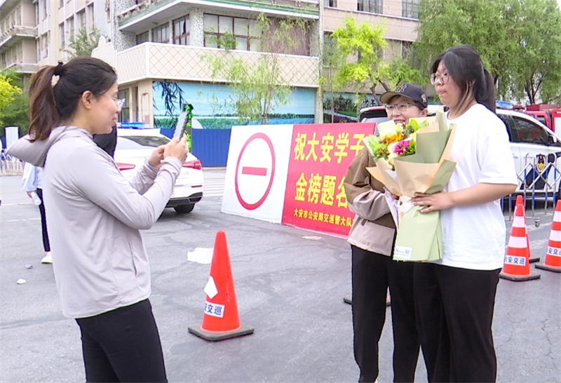 当日,天气微凉,但家长们和执勤人员仍然在考场外守候,很多家长手捧鲜花,眼神里满是关切;执勤人员各司其职,维持现场秩序。考试结束后,家长们微笑地迎接孩子,用爱的守候呵护奋力拼搏的学子。