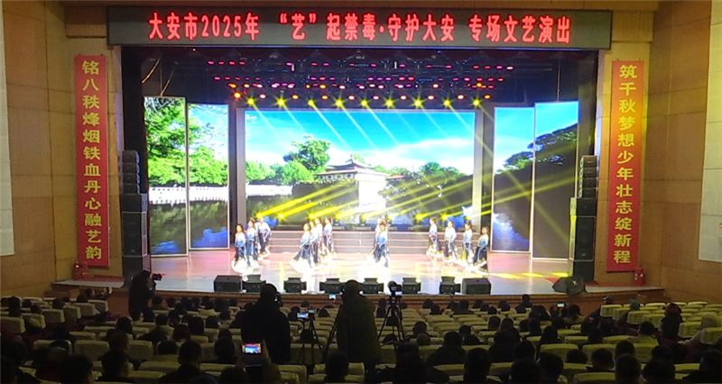 为深入贯彻落实我市禁毒工作方针政策,筑牢全民禁毒思想防线,近日,由市禁毒机制办、市文化广播电视和旅游局主办,市公安局、市文化馆、市文化活动中心承办的“艺”起禁毒·守护大安专场文艺演出在市文化活动中心成功举办。