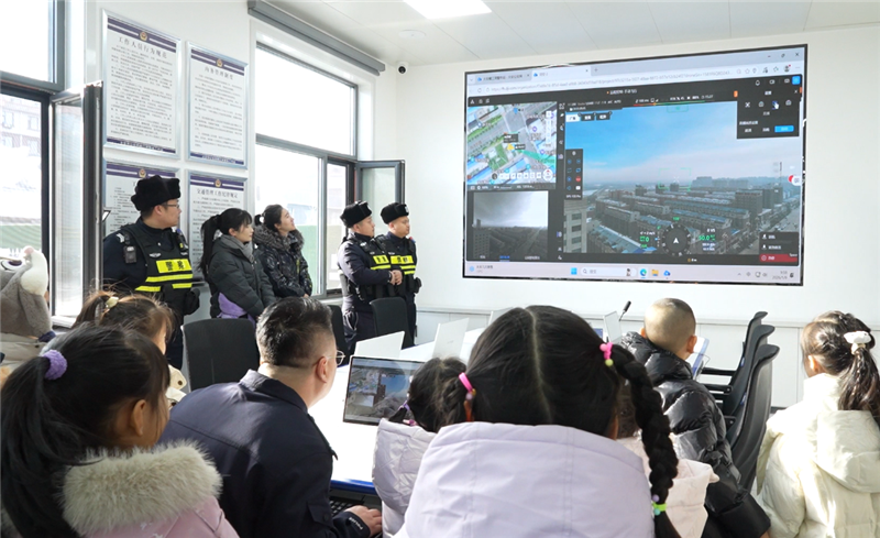 在警情模拟环节,民警先向参观群众详细讲解110的受理范围、正确报警流程,以及如何清晰说明事发地点、事件经过等关键信息。警宝们亲身体验了110接处警的全过程,真切感受到警察职业的责任与光荣。随后,参观群众来到嫩江湾警务工作站参观,民警详细介绍了警务工作站的日常职能、辖区防控范围,让大家更加直观地了解警务工作站在日常生活中的作用。民警还现场操控无人机进行飞行演示,灵活展示了盘旋、升降等动作,完美展现速度与激情的魅力,引来现场阵阵欢呼。活动最后,民警为参与互动的群众和警宝们送上精心准备的小礼物,将安全感与温暖传递给每一个人。
