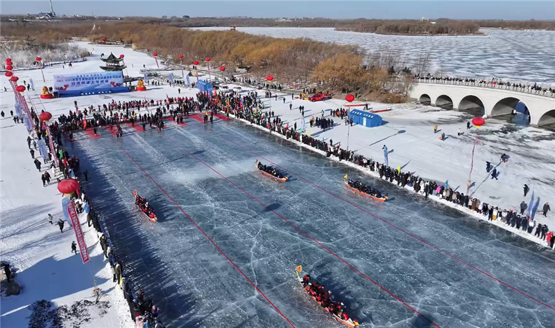 大安嫩江湾冰上龙舟赛开赛 512名选手冰面竞逐燃动寒冬