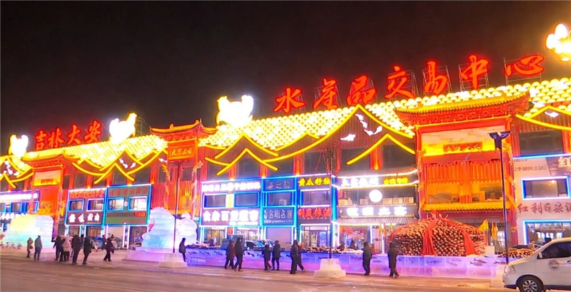 作为大安“冷资源”转“热经济”的核心载体,大安水产品交易中心以“沉浸式渔猎文化体验+产业链科普+年货采购”为核心,打造常设体验空间。场内布设鱼形、浪花主题冰灯造景,搭配年货装饰,兼顾氛围与舒适度;设有五大渔场展区、民俗表演区、采购区,展区常态化展示鲜活渔获与加工产品,民俗表演区将定期上演渔猎特色秧歌,全方位满足游客需求。