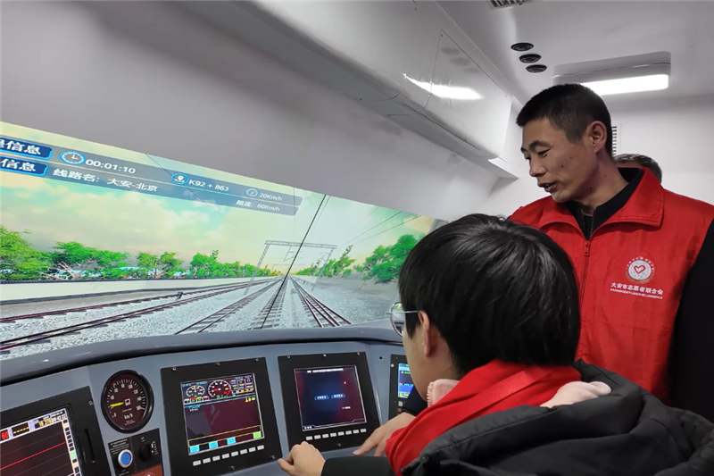 在游客中心,研学营学员们参与“致敬蒸汽时代,我与火车结兄弟”抽签结对打卡活动。在记忆馆,学员们参加了“践行青春使命,助力铁路发展”主题论坛,围绕铁路遗产保护、技术演进、青春使命等硬核话题展开交流探讨。在体验馆,机械原理不再是课本上的抽象文字,馆内全解剖展示的“建设型蒸汽机车”使课本上的热力学知识变得生动直观。模拟驾驶舱内,同学们轮流体验司乘操作,解锁驾驶奥秘。