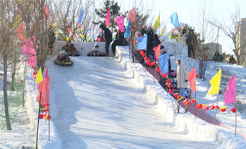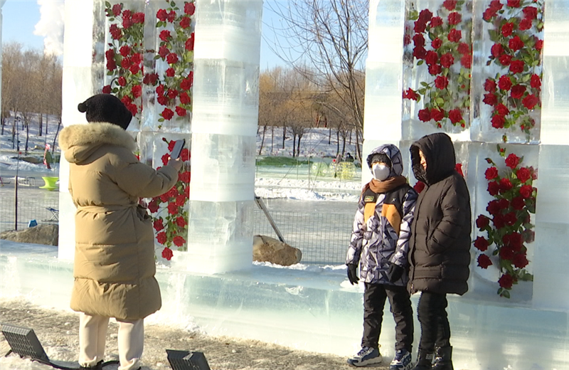 在嫩江湾冰雪乐园内人头攒动。冰滑梯前队伍蜿蜒,大人小孩依次俯冲而下,欢呼声、尖叫声此起彼伏;冰上自行车、抽冰猴等经典项目,唤起许多人的童年回忆,家长带着孩子重温儿时乐趣,欢声笑语洒满冰面。备受年轻人追捧的八爪鱼橡胶船、冰上碰碰球等新潮玩法区,大家相互协作,尽情享受冰雪运动的速度与激情。除了趣味十足的冰雪项目,特色冰雕展区同样引人驻足,“冰封玫瑰”的浪漫与“冰封鲜鱼”的渔乡风情相映成趣,成为游客打卡留念的热门地点,大家纷纷与冰雕合影,定格冬日美好瞬间。