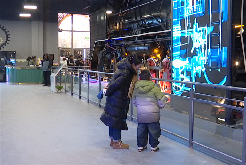 在机车博览园入口,鸣笛喷雾机车唤醒了市民游客的历史记忆,引领他们沉浸式体验工业遗产的文化积淀。冰雪覆盖下的各式功勋机车,仿佛穿越冰封时光隧道的钢铁巨人。夜间亮起的LED灯带,勾勒出机车虚实交织的“光影奇境”,吸引众多市民游客夜间观赏。记忆馆与体验馆带领游客深度感受国家机车工业发展脉络,让工业遗产焕发光彩。