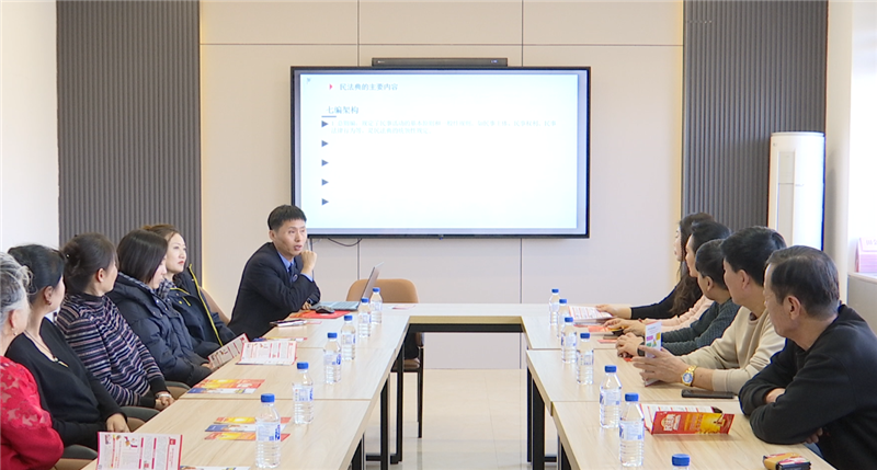 活动中,市法律援助中心周力律师围绕《中华人民共和国民法典》的七编核心内容,结合社区日常生活场景,采取“普法PPT播放+法治宣讲”的方式,生动阐释其核心要义。针对婚姻家庭、人格权、合同及侵权责任等编章,周律师用真实案例,以“接地气”的语言,系统解读了夫妻共同财产认定、子女抚养、人格尊严保护、民间借贷风险防范、侵权责任界定等居民关心的热点问题,重点说明相关权利义务规定及维权途径。现场互动氛围热烈,居民就债务纠纷、隐私保护等问题积极提问,律师逐一解答,帮助现场群众厘清法律误区,提升法治素养。