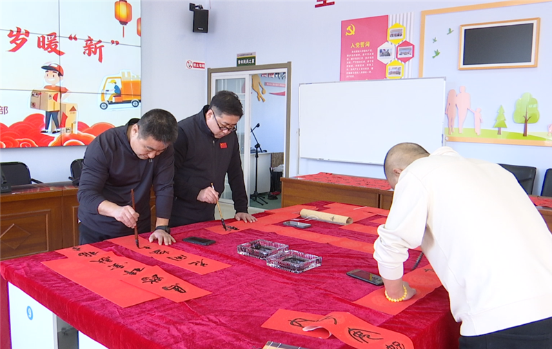 活动现场暖意融融,洋溢着喜庆的新春氛围。写春联与包饺子同步进行,热闹非凡。书法家现场挥毫泼墨,创作出一副副寓意吉祥的春联与福字,由市委社会工作部工作人员送到辖区新就业群体手中。在包饺子区域,街道工作人员分工协作、默契配合,和面、擀皮、包馅,一个个饱满的饺子在手中成型。这些饺子被精心分装后,送往了辖区困难群众和独居老人家中。笔墨传递祝福,饺子温暖人心,让新春关怀直达群众心坎。