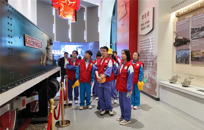 本次研学紧扣“思政铸魂、实践育人”主线,打造精品实景课堂,推动研、学、游深度融合。在大安机车博览园,一场穿越百年时空的研学之旅有序展开。伴随着嘹亮的机车鸣笛,师生们在火车头广场了解1314蒸汽机车构造,感受工业文明的厚重磅礴;走进机车记忆馆,循着中国铁路从“龙号机车”到现代轨道交通的发展脉络,透过珍贵文物与老照片,让学生在触摸历史、聆听故事中感悟红色初心,传承工业精神;在内燃机车广场,大家围绕东风系列内燃机车,对比动力升级、探寻技术革新,体验环节还设置了“工业风打卡点”,利用复古车厢打造的咖啡馆、泡面馆、图书馆,让学生感受工业与生活的美好融合;登上凌空观景平台,俯瞰吉尼斯最大规模蒸汽机车群,震撼人心;在体验馆,结合蒸汽机车解剖模型,探究机车原理、体验模拟驾驶,解答学生关于“蒸汽机车如何运转”的疑问;在蒸汽机车广场,师生们聆听“黄继光号”抗美援朝、勇担使命的英雄事迹,在历史与现实交汇中传承红色基因与工业奋斗精神。
