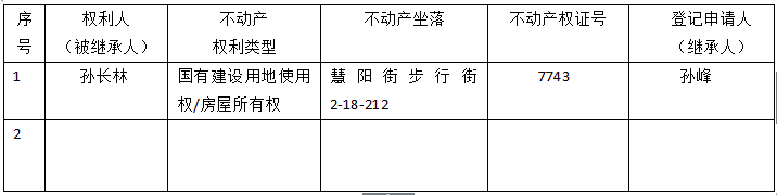 标 题: | 继承不动产登记公告(孙峰) |
