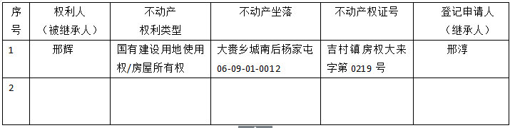 标 题: | 继承不动产登记公告(邢淳) | ||