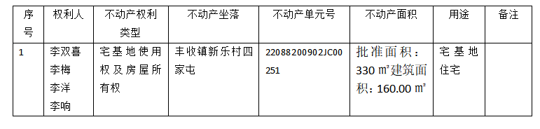 标 题: | 不动产首次登记公告(李双喜李梅李洋李响) | ||