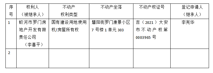 标 题: | 继承不动产登记公告(李宪华) | ||