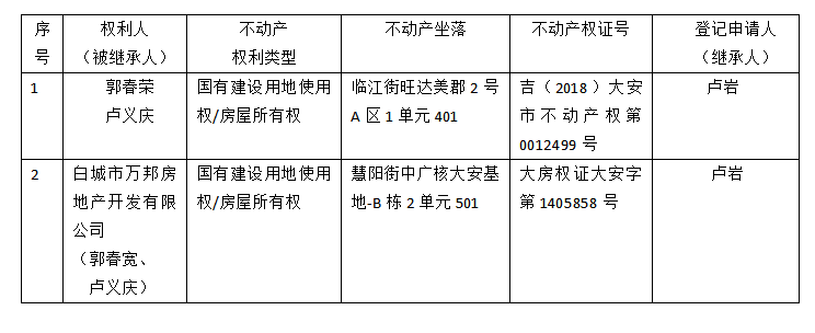 标 题: | 继承不动产登记公告(卢岩) | ||