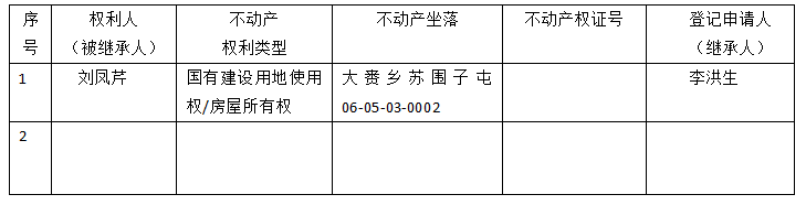 | 标 题: | 继承不动产登记公告(李洪生) |