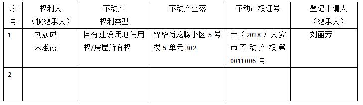 | 标 题: | 继承不动产登记公告(刘丽芳) |