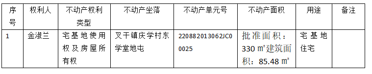 | 标 题: | 不动产首次登记公告(金淑兰) | ||