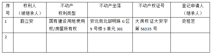 | 标 题: | 继承不动产登记公告(史桂芝) |