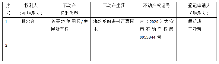 | 标 题: | 继承不动产登记公告(解斯琪王亚芳) |