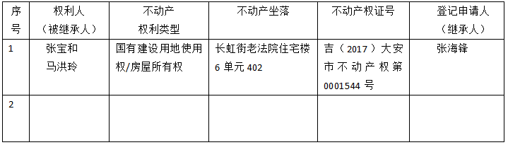 | 标 题: | 继承不动产登记公告(张海锋) |