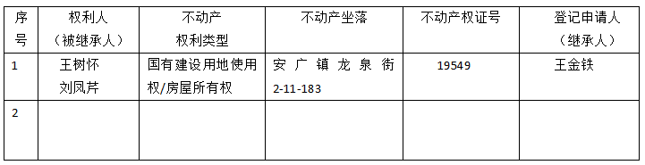 | 标 题: | 继承不动产登记公告(王金铁) | ||