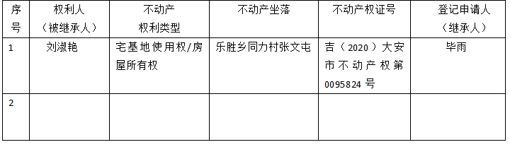 | 标 题: | 继承不动产登记公告(毕雨) |