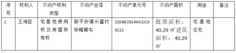 | 标 题: | 不动产首次登记公告(王海臣) |
