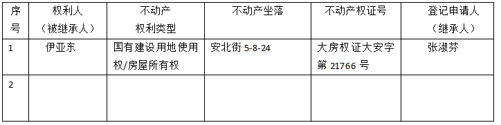 | 标 题: | 继承不动产登记公告(张淑芬) |