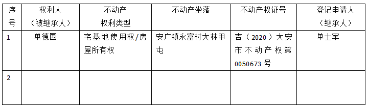 | 标 题: | 继承不动产登记公告(单士军) | ||