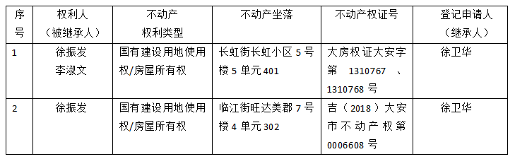 | 标 题: | 继承不动产登记公告(徐卫华) |