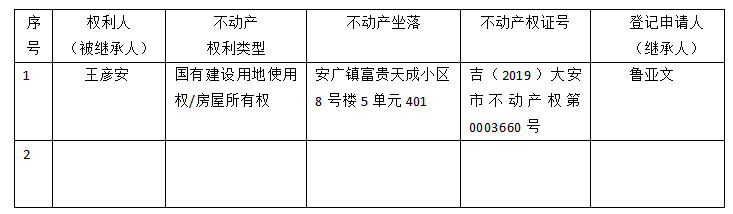 | 标 题: | 继承不动产登记公告(鲁亚文) |