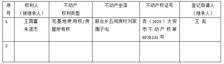 | 标 题: | 继承不动产登记公告(王彪) | ||