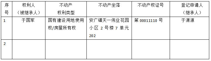| 标 题: | 继承不动产登记公告(于渊源) |