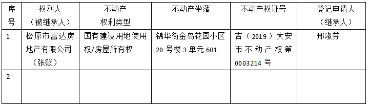 | 标 题: | 继承不动产登记公告(邢淑芬) |