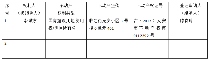 | 标 题: | 继承不动产登记公告(滕春玲) |