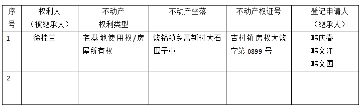 | 标 题: | 继承不动产登记公告(韩庆春韩文江韩文国) | ||