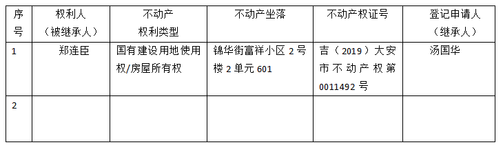 | 标 题: | 继承不动产登记公告(汤国华) |