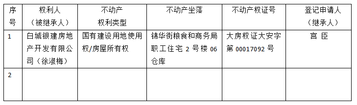 | 标 题: | 继承不动产登记公告(宫臣) |