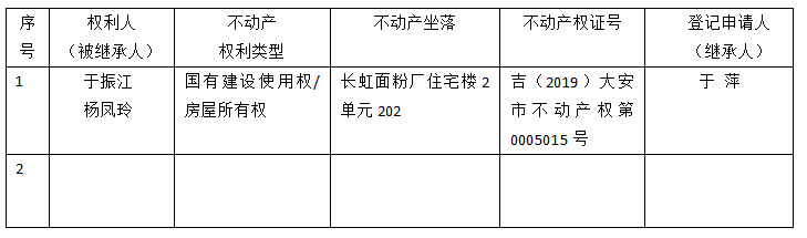 | 标 题: | 继承不动产登记公告(于萍) | ||
